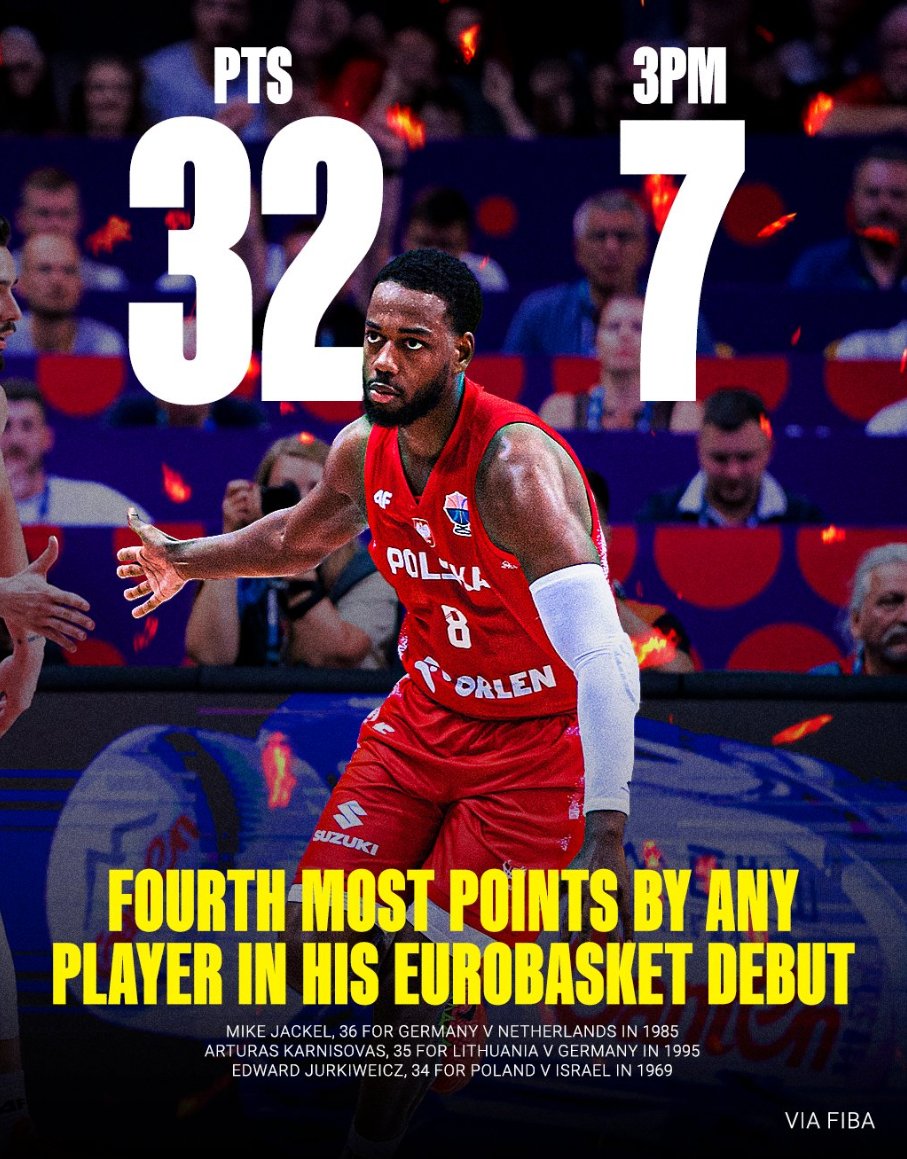 三年后波尼特卡又带领波兰105-95击败斯洛文尼亚,这场比赛波尼特卡不是第一功臣而是二当家,他全场比赛13中8拿到23分7篮板,因为第一功臣是波兰归化乔丹-洛伊德。